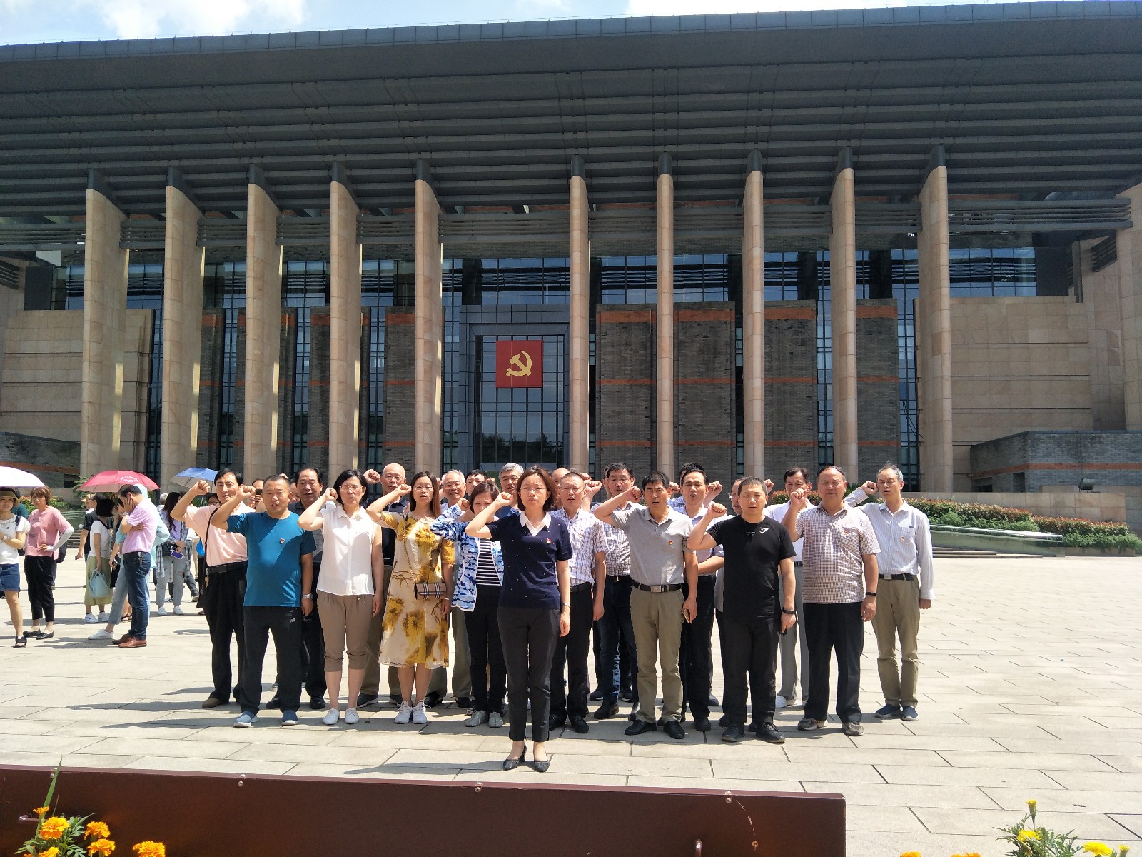 在南湖革命纪念馆宣誓墙前,南通市台办主任、党支部书记赵男男领誓,所有党员庄严郑重地举起右手重温入党誓词:“我志愿加入中国共产党,拥护党的纲领,遵守党的章程……随时准备为党和人民牺牲一切,永不叛党!”